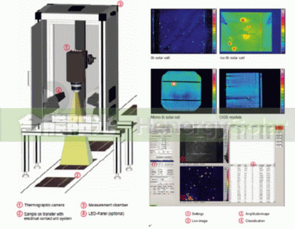PV-LIT太陽能電池和組件在線檢測系統(tǒng)可對太陽能電池及完整的太陽能組件的各種缺陷進(jìn)行全自動(dòng)檢測。PV-LIT可以在線非接觸快速穩(wěn)定的連續(xù)檢測生產(chǎn)過程中的產(chǎn)品,檢測時(shí)間小于1秒鐘。另外,客戶也可選擇接觸系統(tǒng)(DLIT)進(jìn)行單個(gè)抽檢及詳細(xì)實(shí)驗(yàn)。