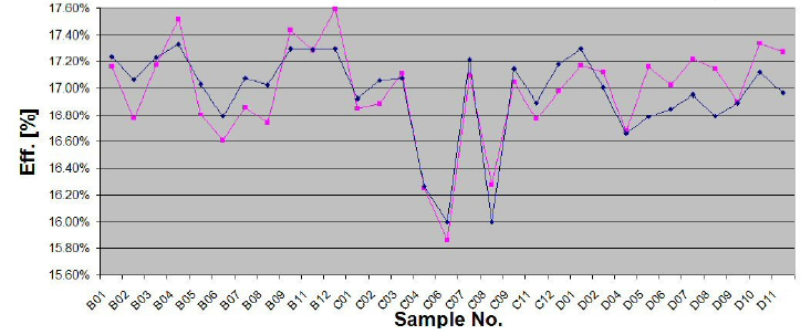 全工藝檢測(cè),經(jīng)過(guò)準(zhǔn)確分析,滾輪的damage影響到之后所有的環(huán)節(jié),并最終影響到cell效率。